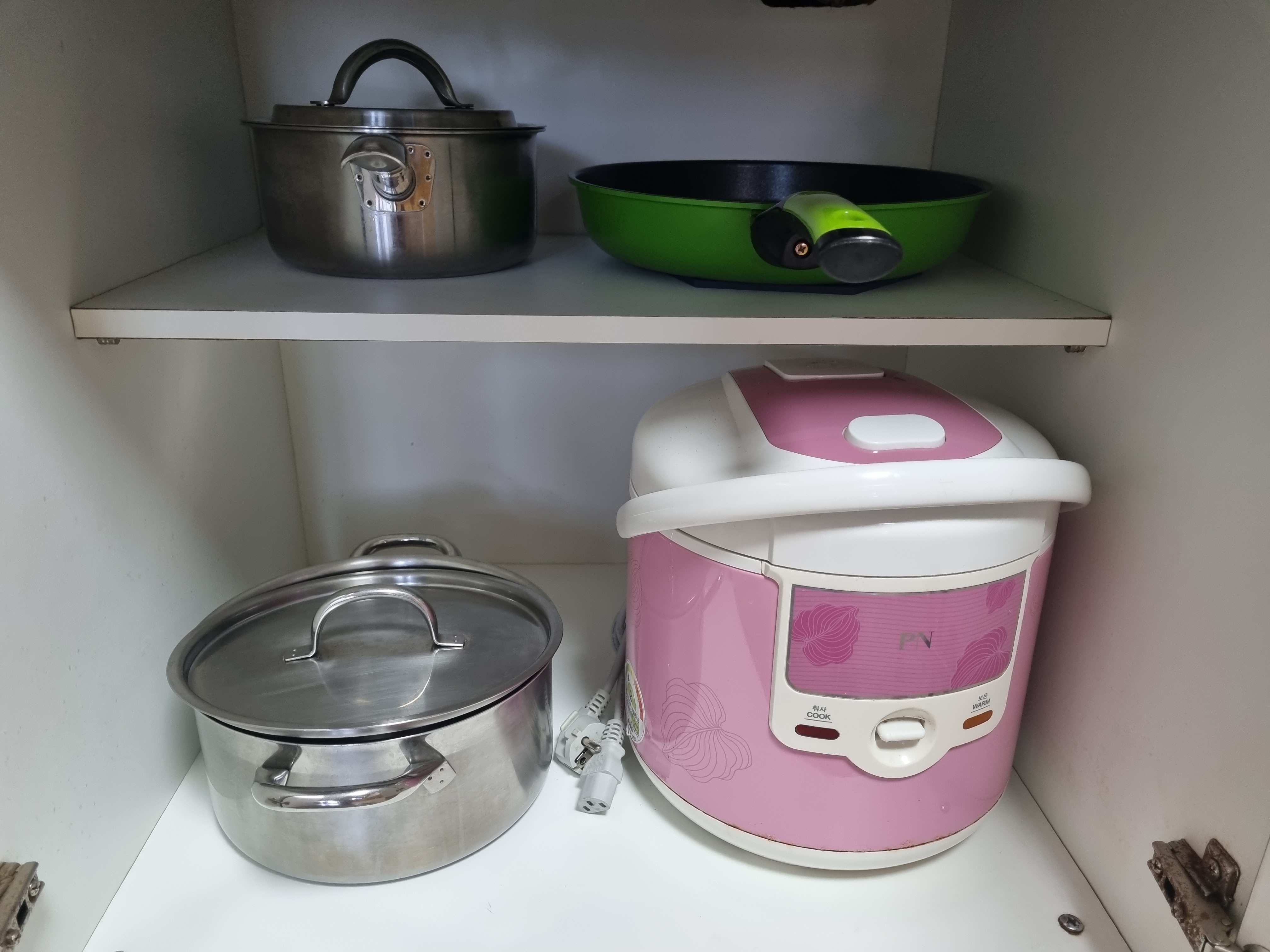 냄비도 두개, 후라이팬 한개 밥솥 1개