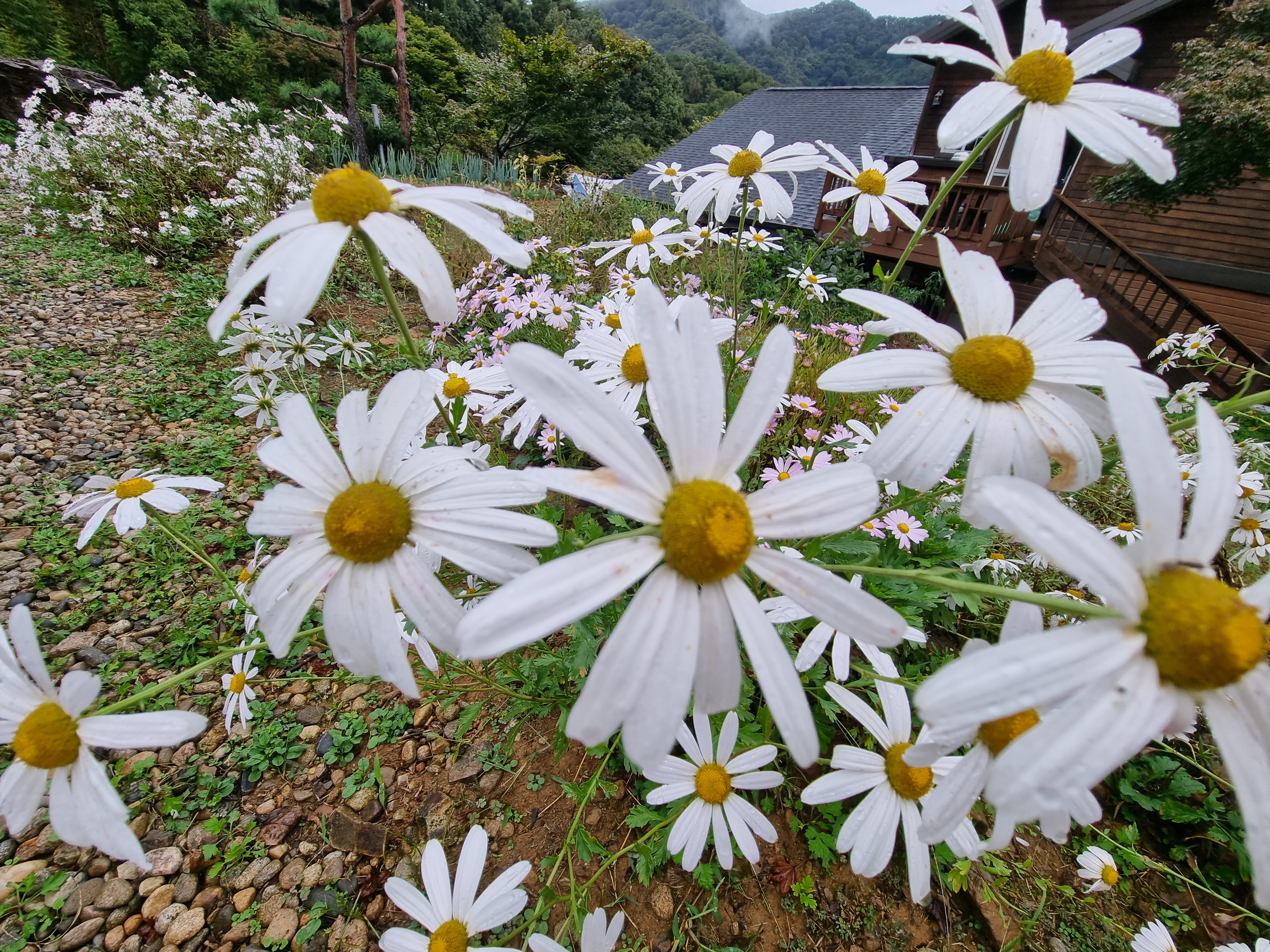 들꽃이 피어있는 예쁜 공간에 자리잡고 있는 옹달샘펜션