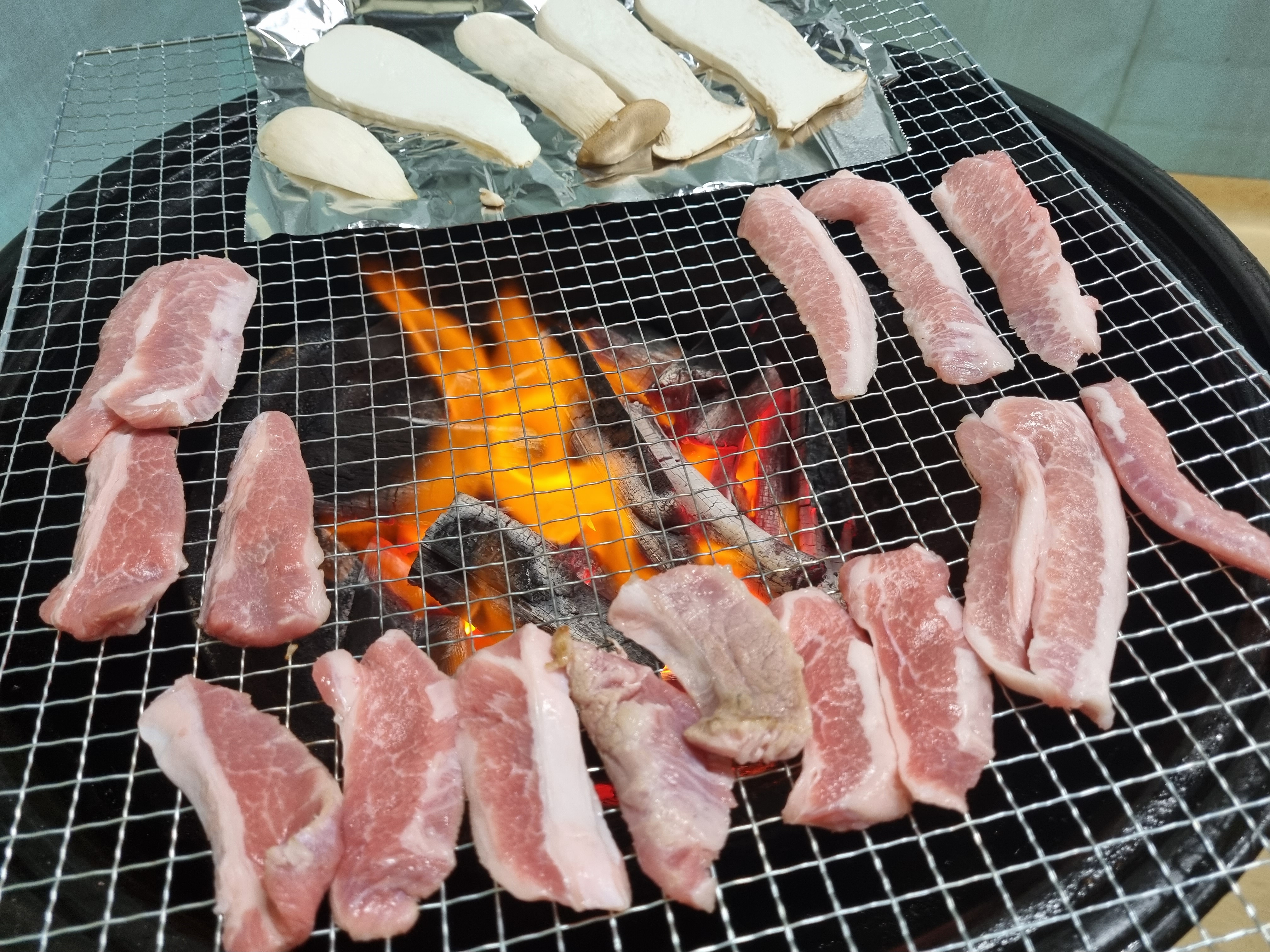 숙소 1층에 숯불구이 할 곳이 준비되어있어요