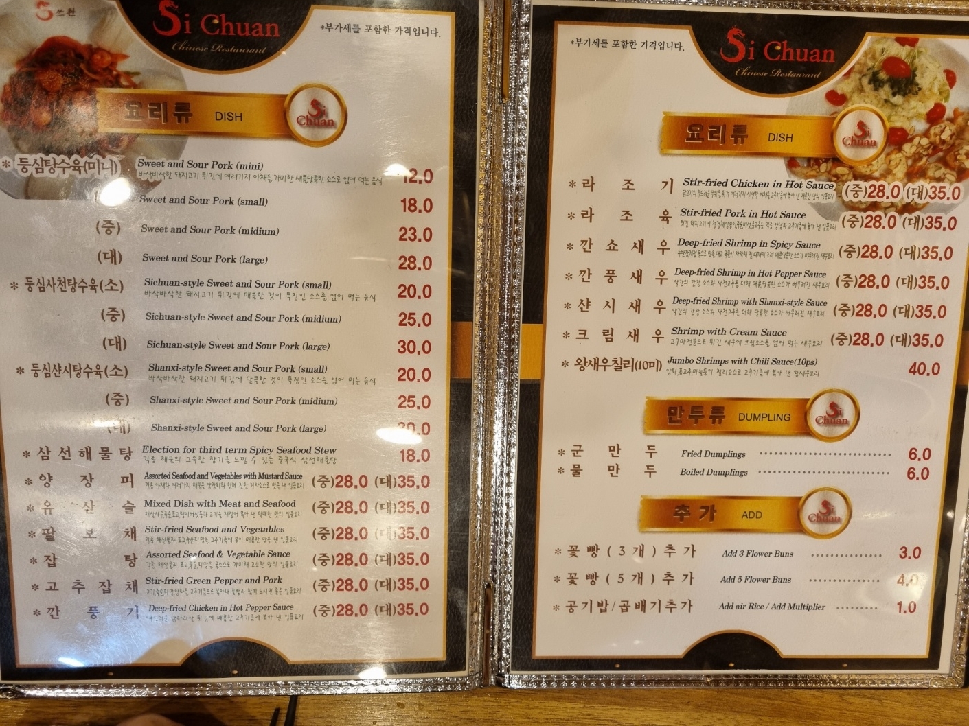 자장면 짬뽕가격이 같은 8천원 심지어 간짜장도 같은가격