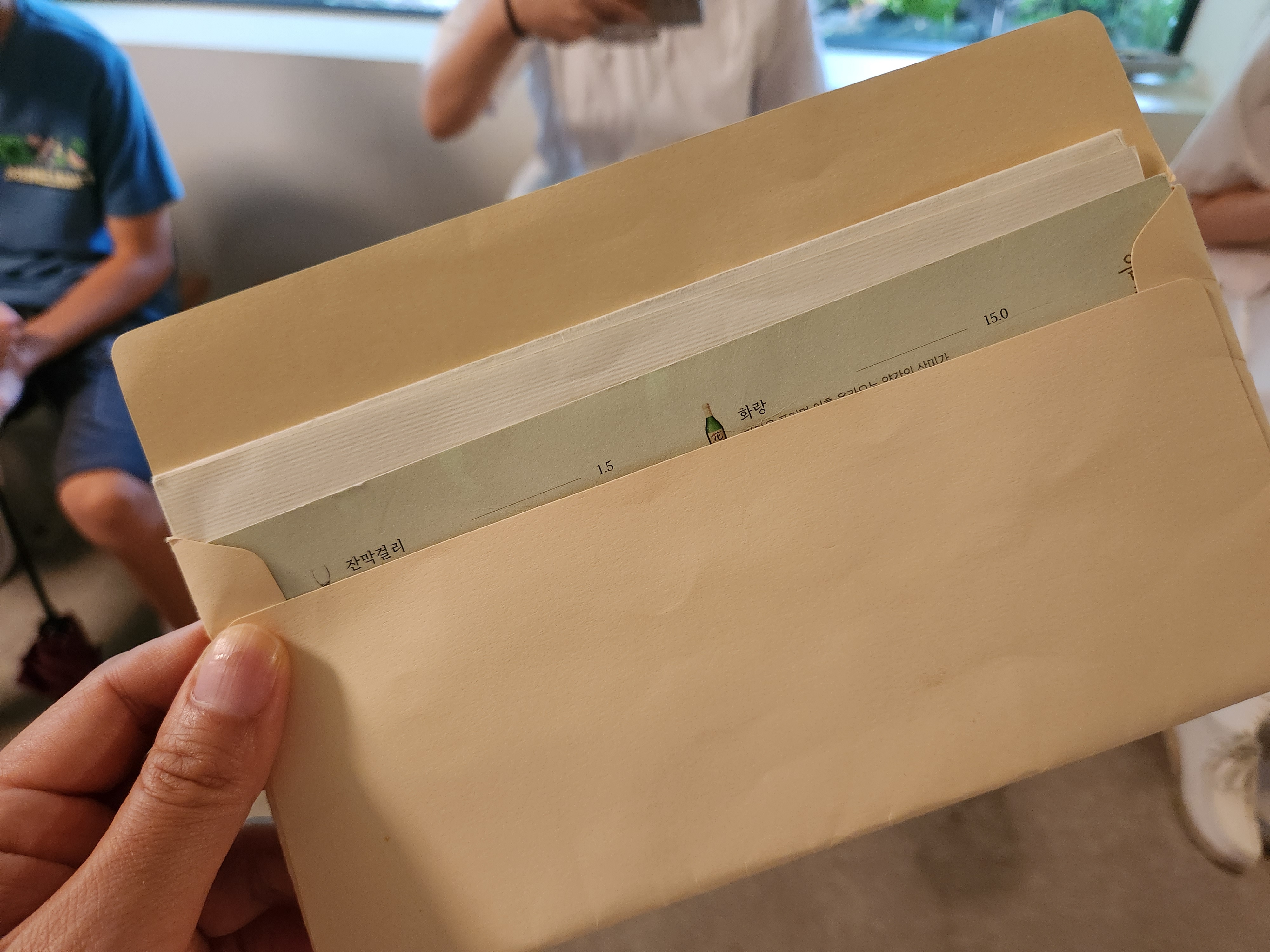 내려오면서 무슨 편지봉투를 하나 주길래 이건 뭐?