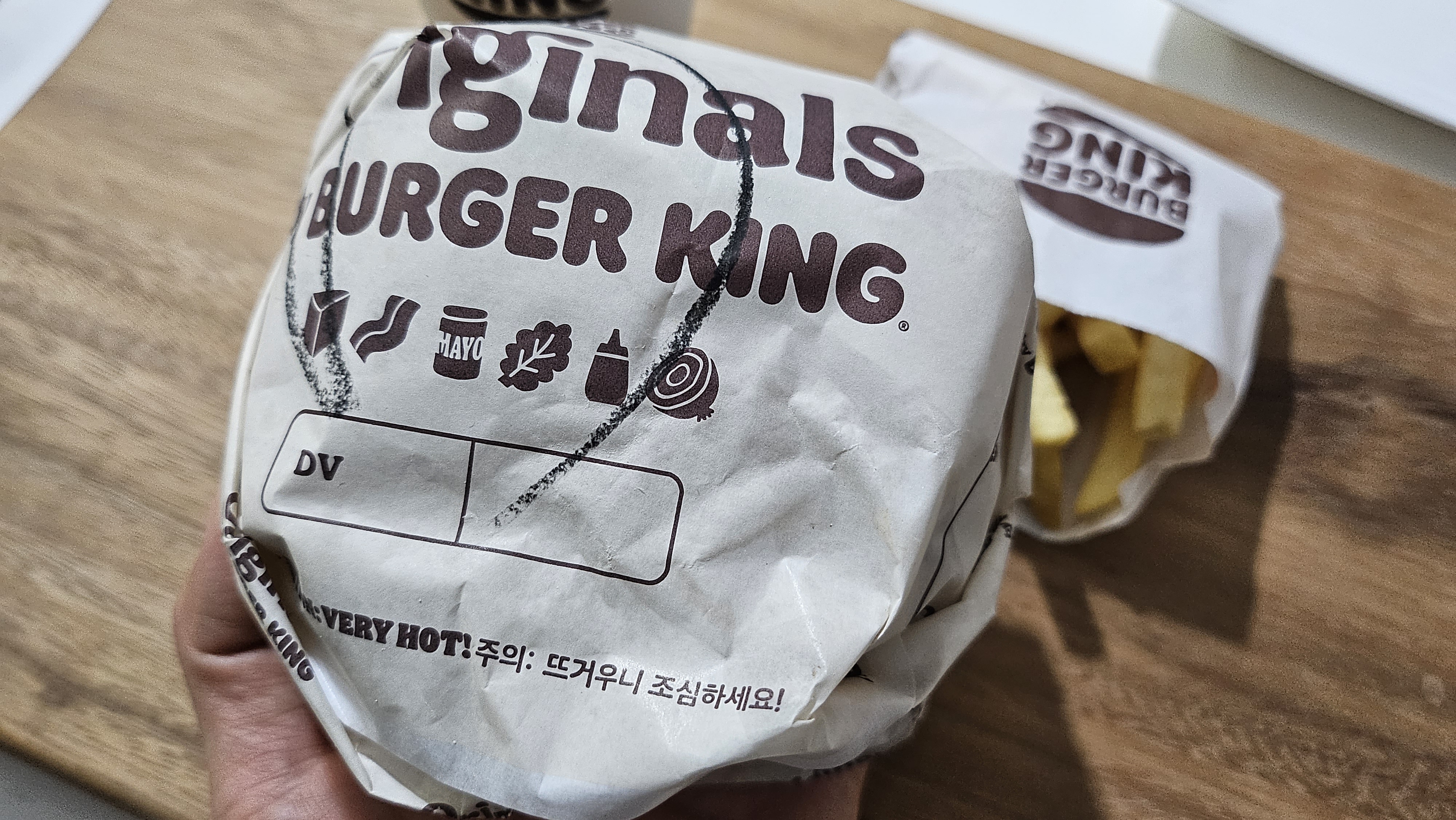 무게를 이기지못하고 압축 짜브가 되어지는 바람에 버거를 포장해서 집으로 돌아오는동안 꾹 눌려진 죽사발이 되었다