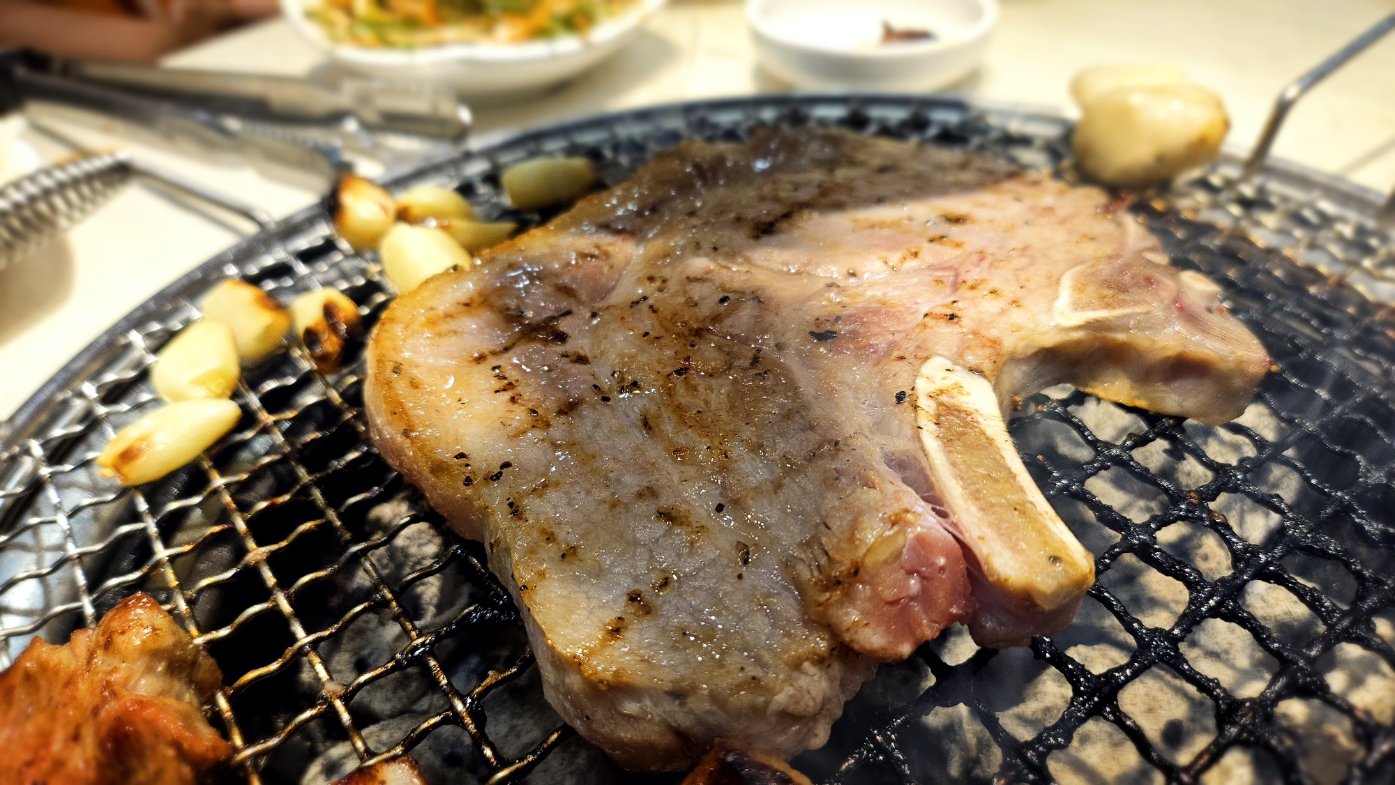 양념과 기름이 들러붙은 불판은 살짝 코팅같은 코팅이 되어서 고기가 심하게 탈거 같지만 오히려 저 코팅덕분에 고기가 불판에 덜 달라붙는다