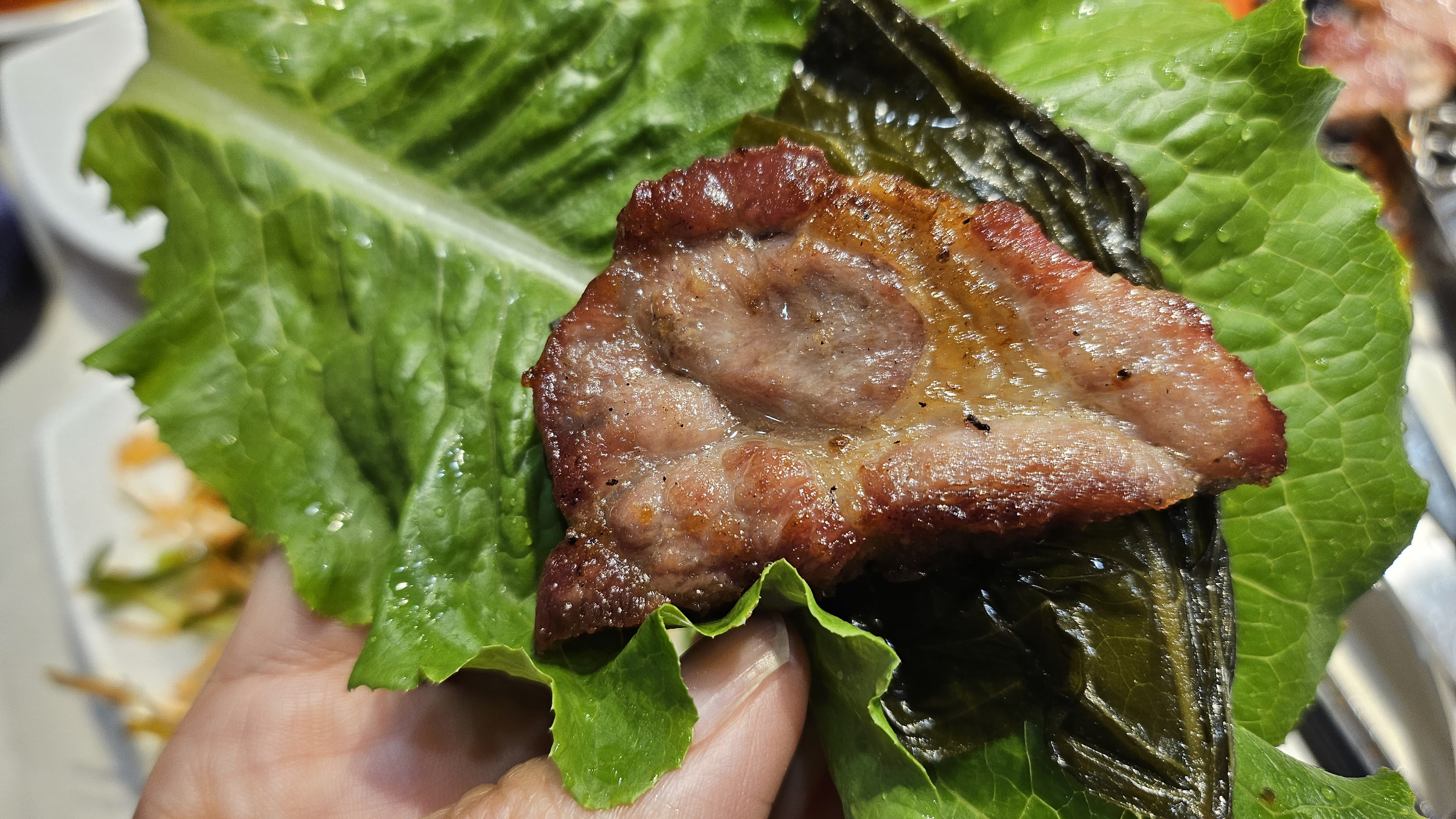 먹느라 바빠서 통삼겹 그 싱싱함이 자세학 없네