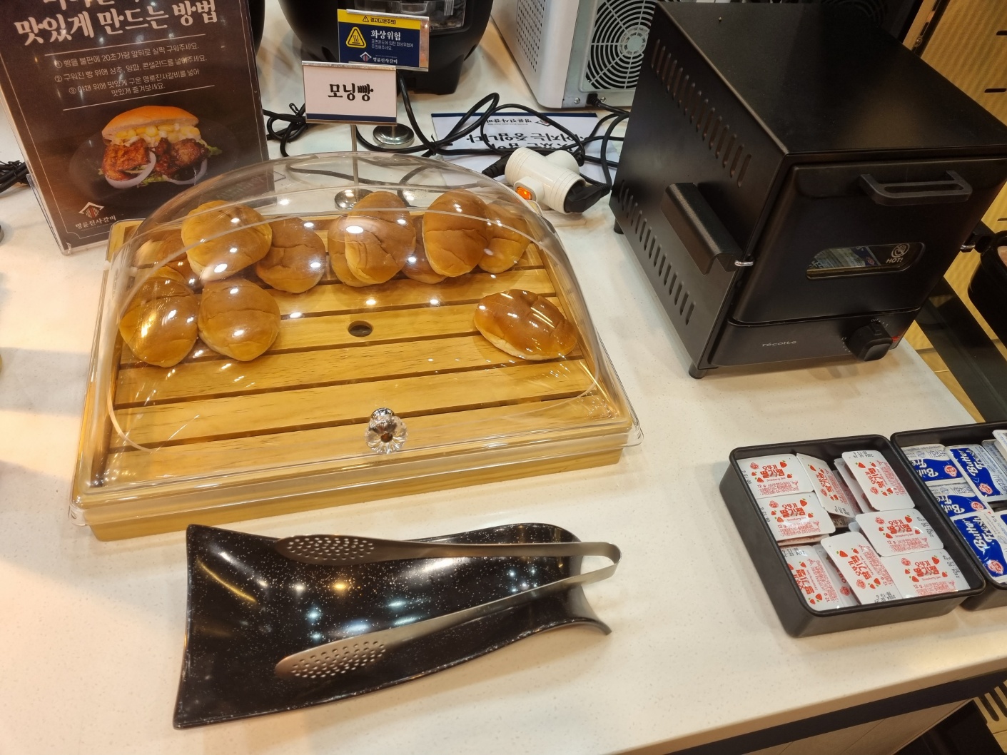 모닝빵은 가운데 칼집이 모두 나있어서 구운 고기에 야채올려서 샌드위치처럼 만들어 먹으면 또 별미로 즐길수 있는 또하나의 메뉴속의 메뉴같은 느낌