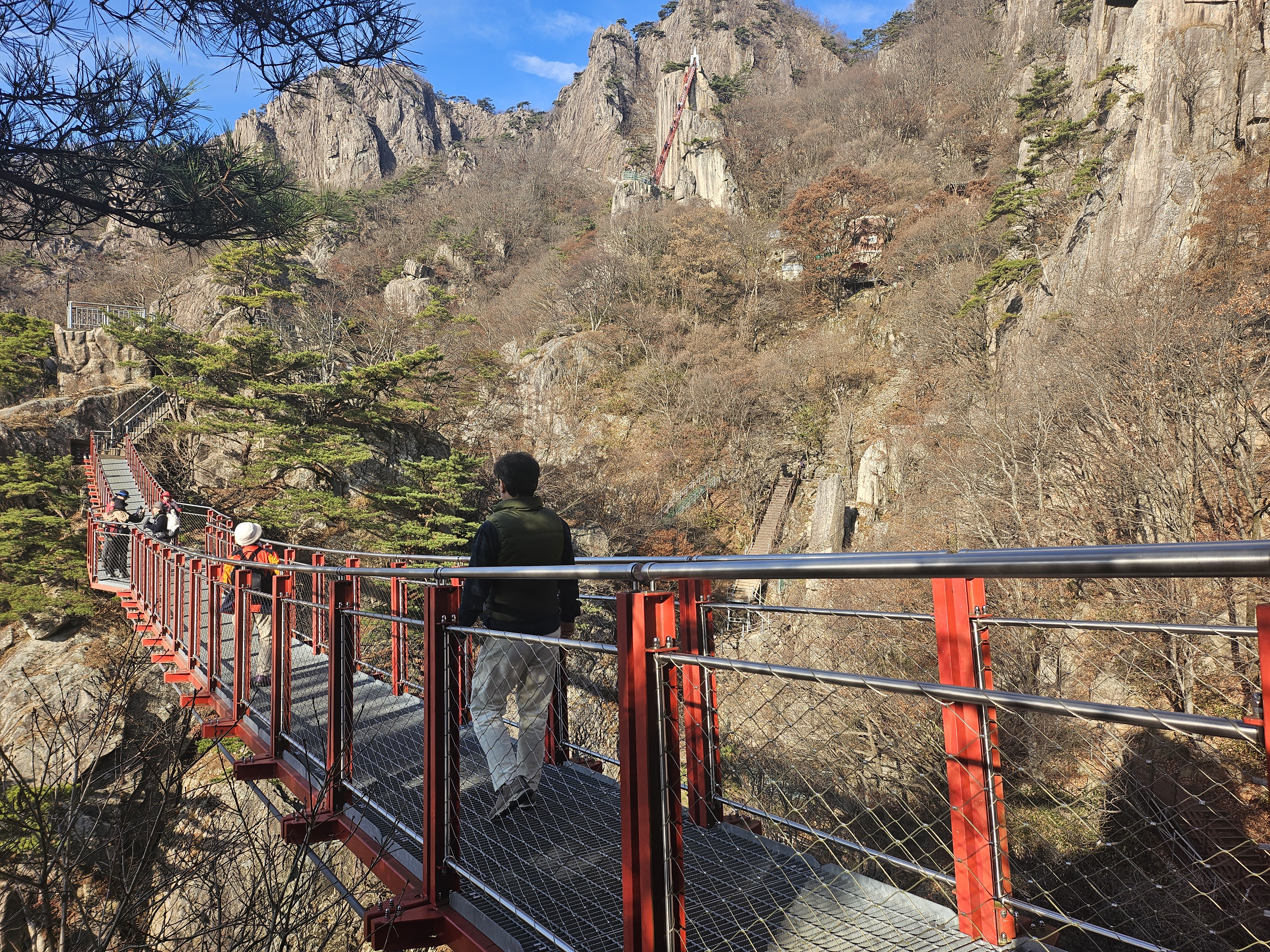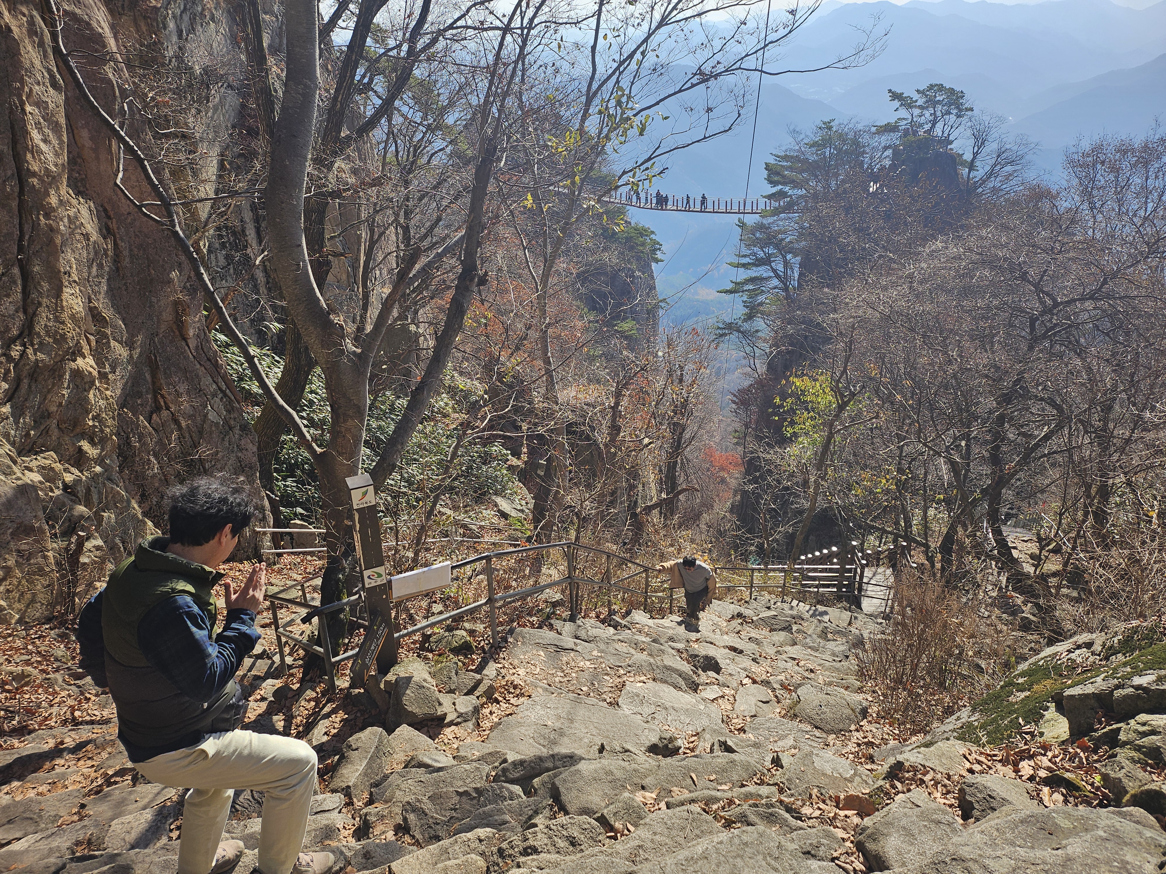 구름다리 지나 삼선계단으로 가는 길이 쉽지 않아요