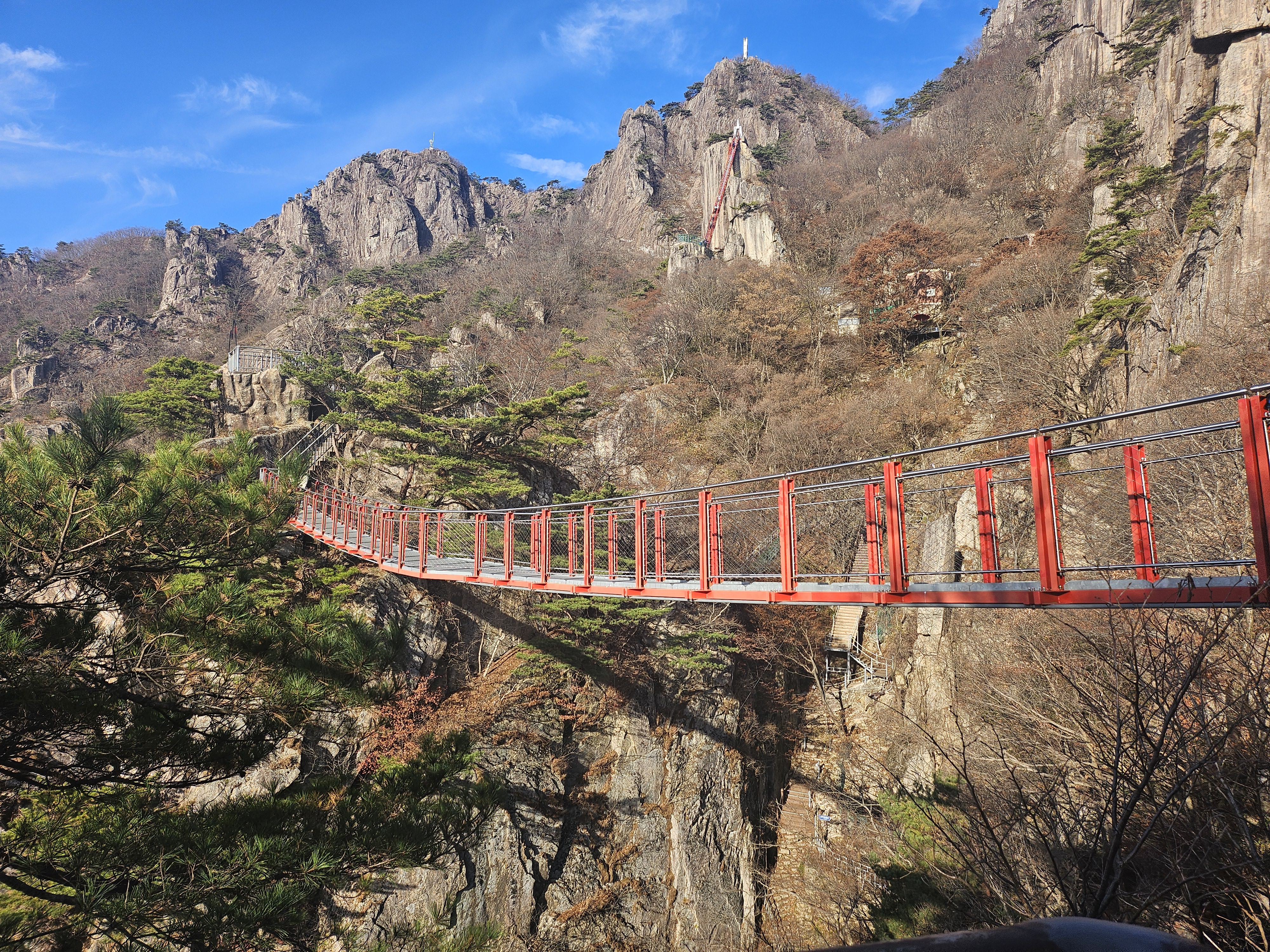 케이블카탑승 > 하차> 금강구름다리 > 삼선계단(포토스폿) > 정상 마천대 > 케이블카 타고 하산