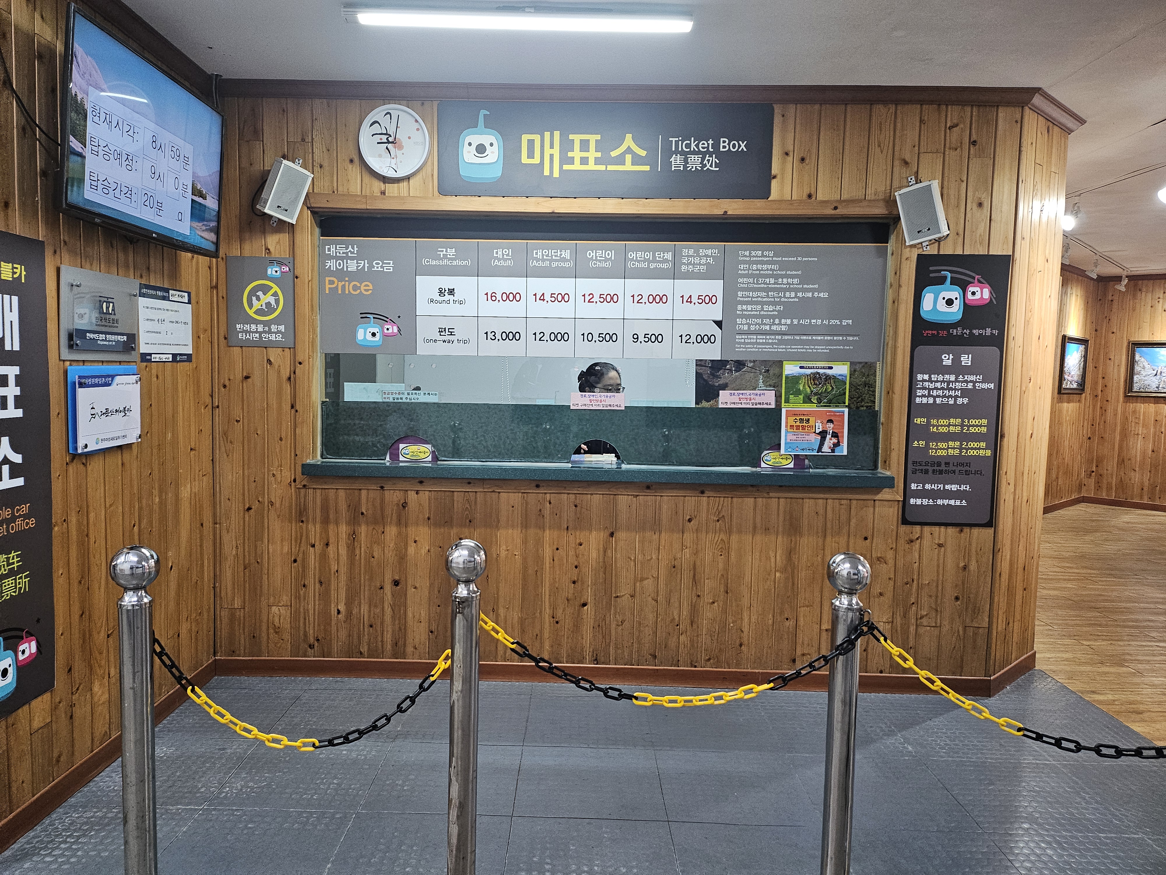 케이블카는 9시 시작 운행시간은 정시부터 시작해서 20분 간격으로 운행 돼요