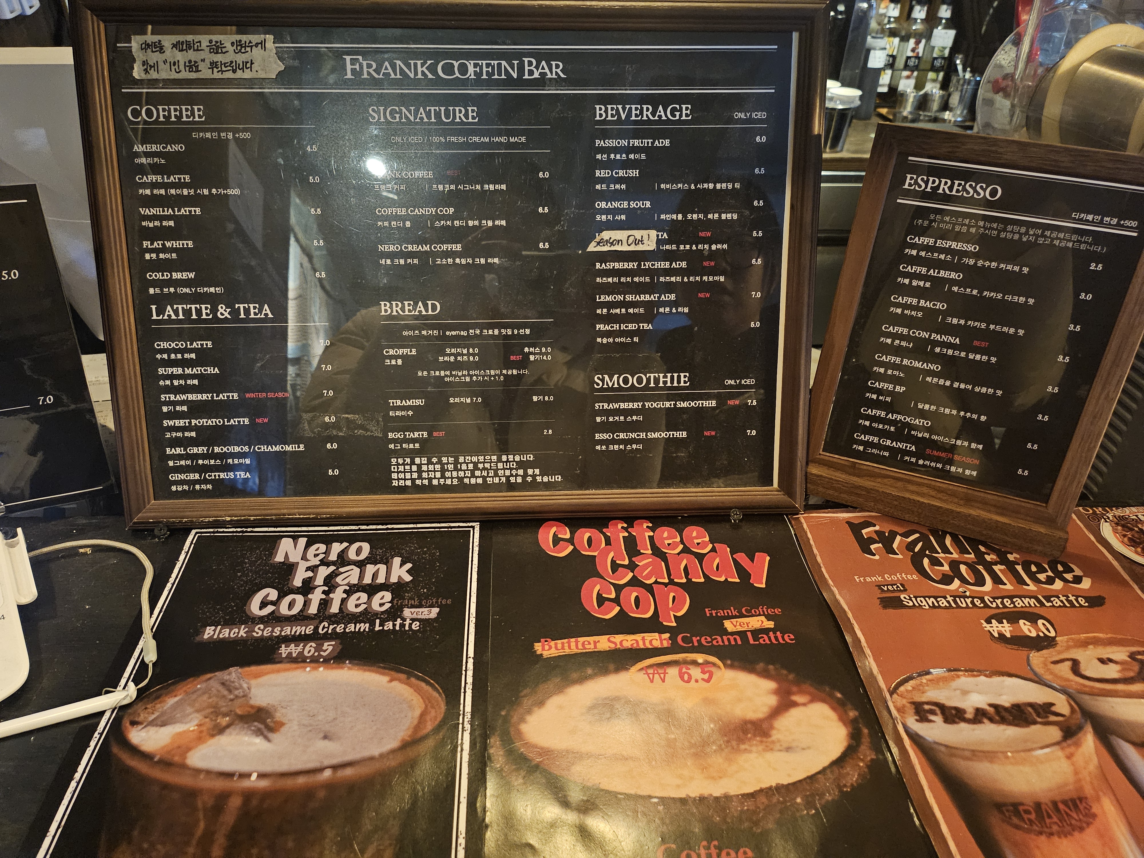 프랭크커핀바 시그니처 크림라테&디카페인&두바이 초코 휘낭시에