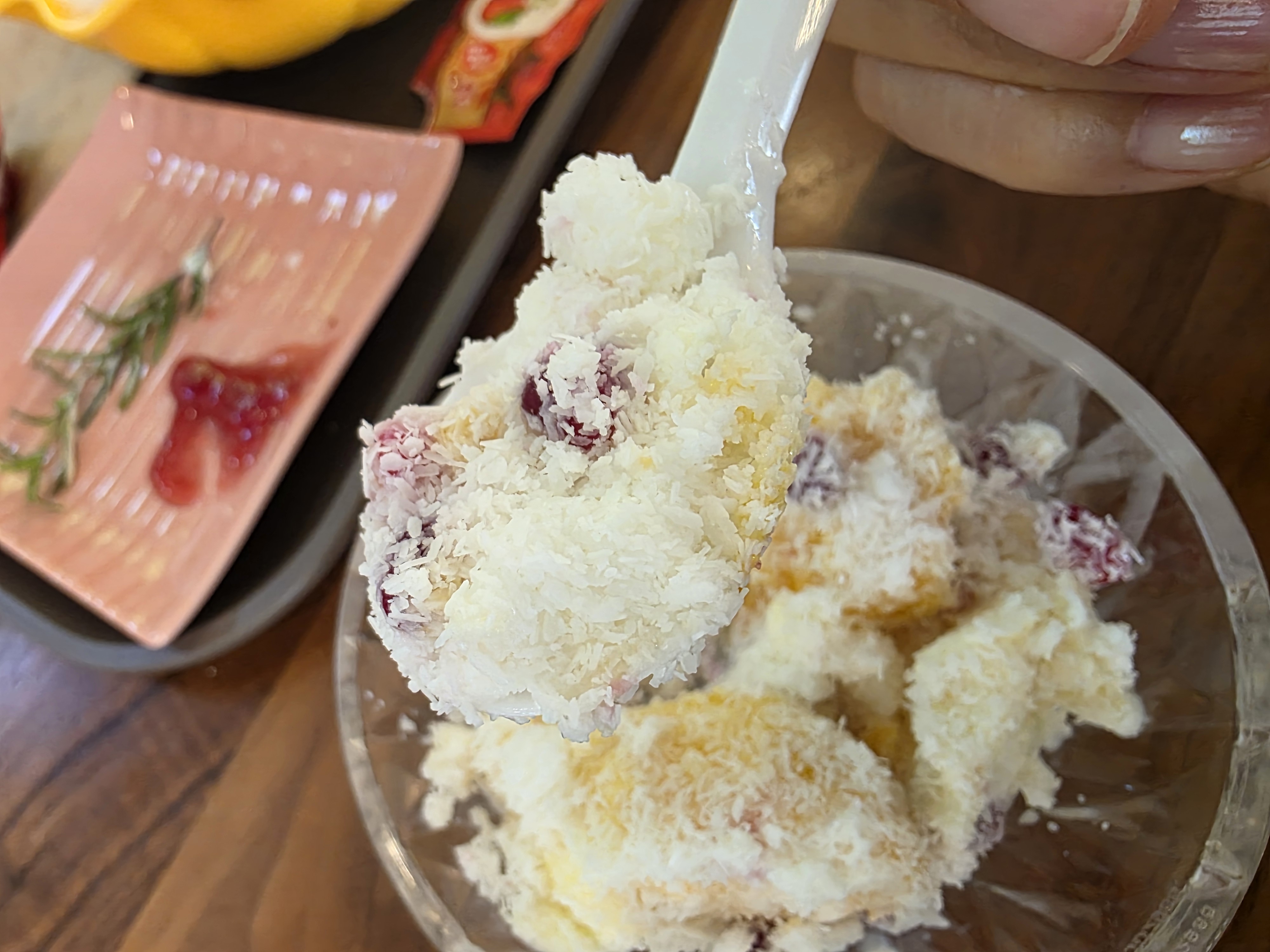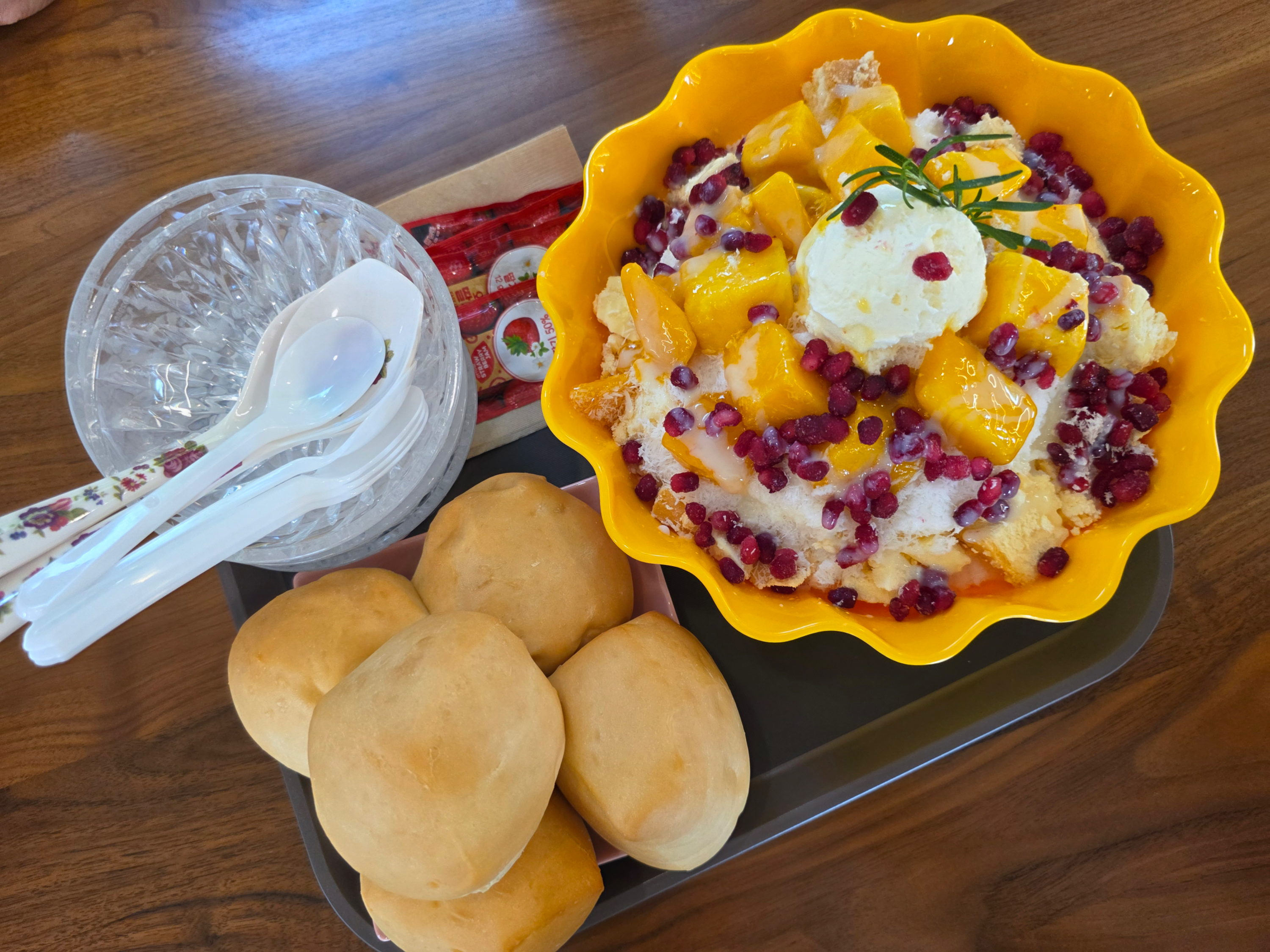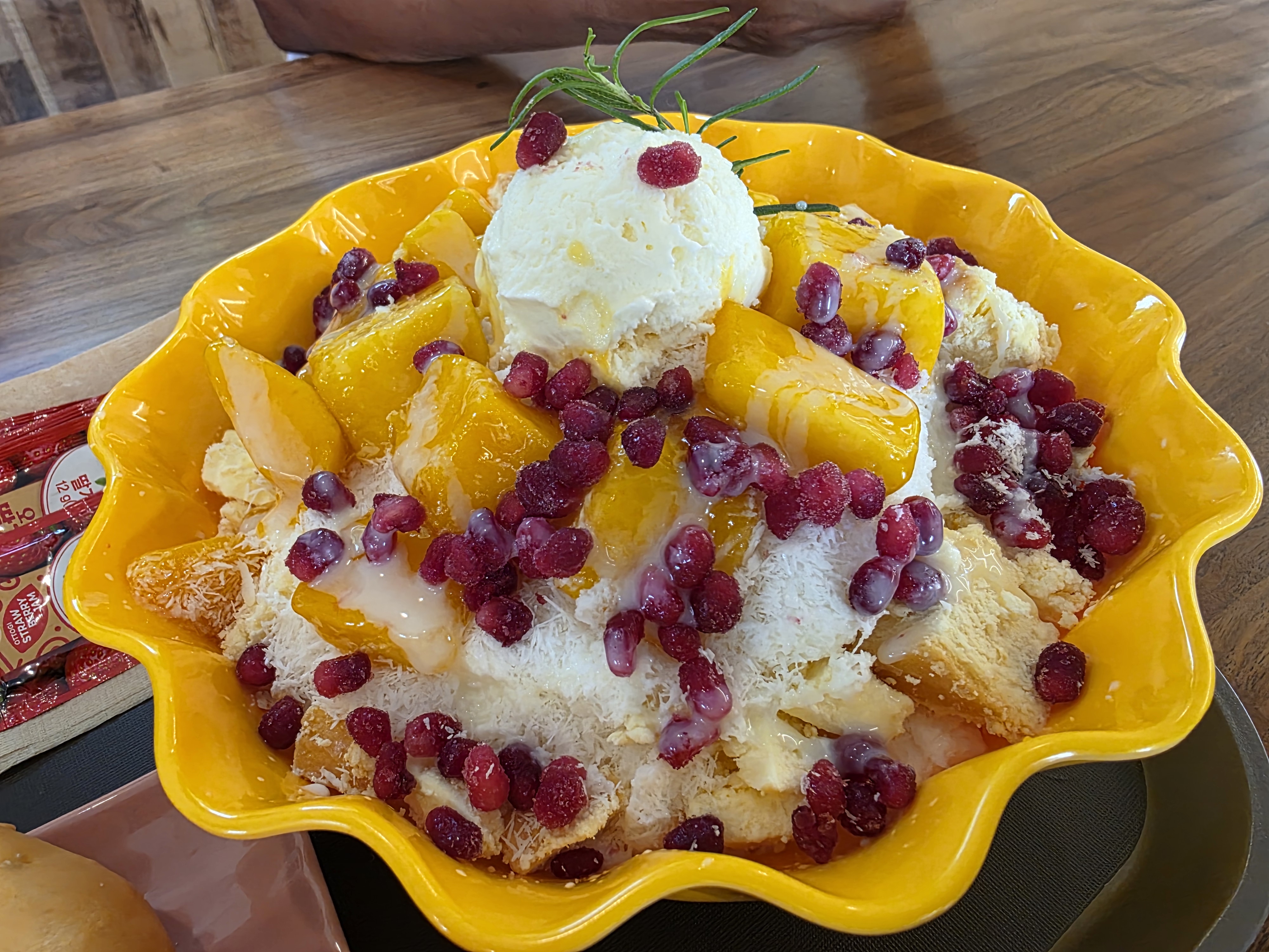 망고도 푸짐하구 특이하게 석류가 골고루 뿌려져있어요