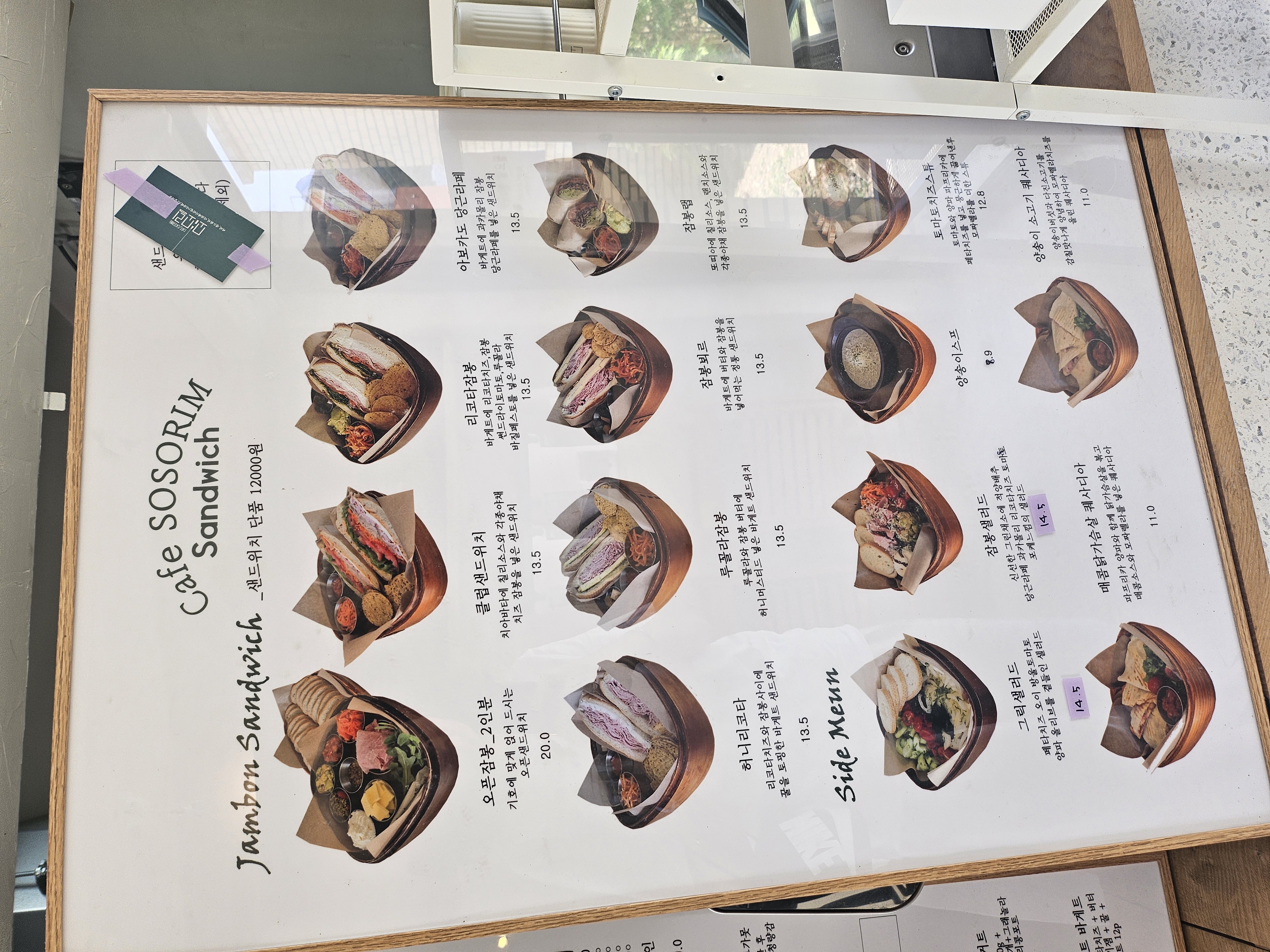 브런치 카페 답게 샌드위치류도 다양하게 있어요