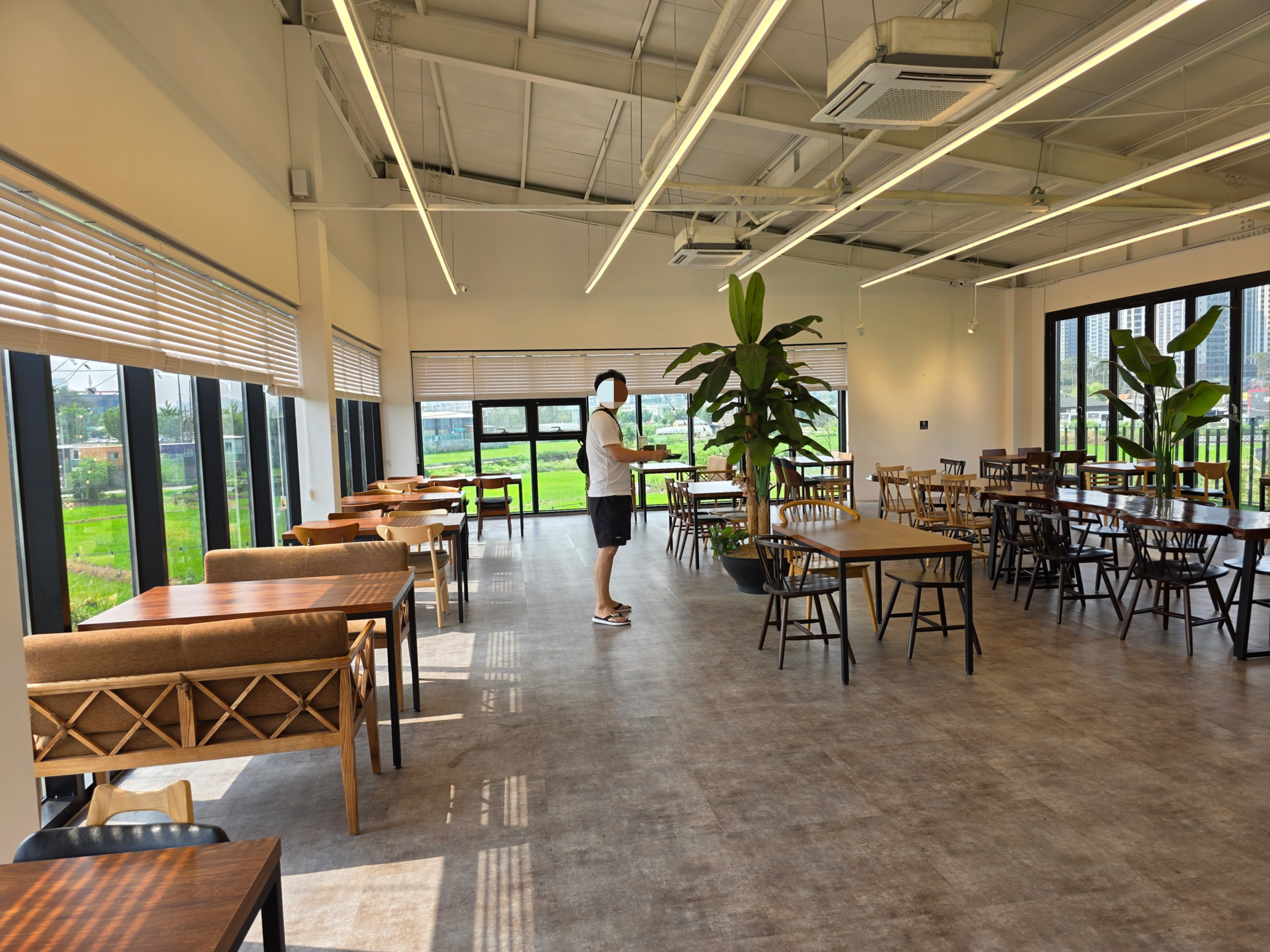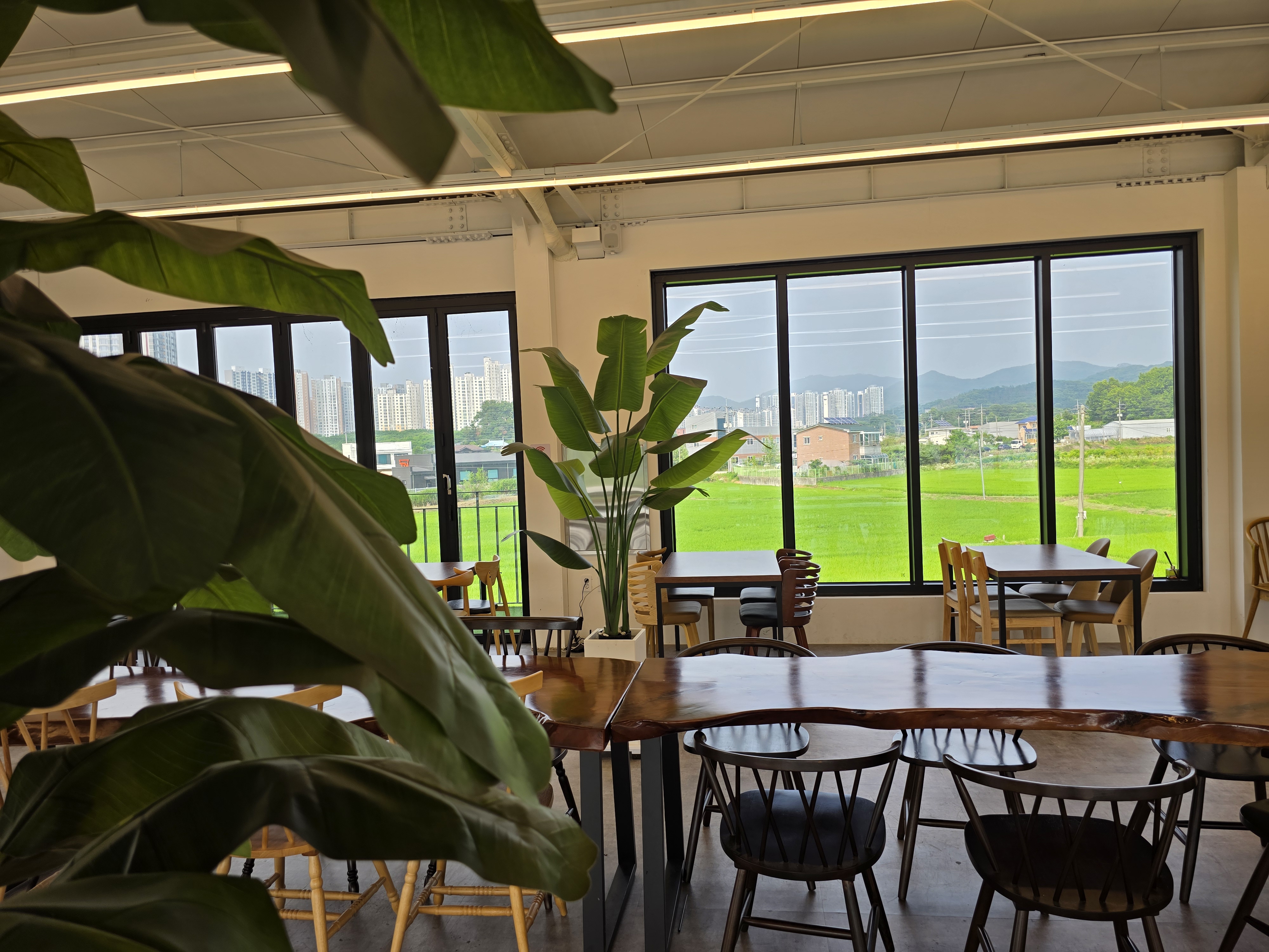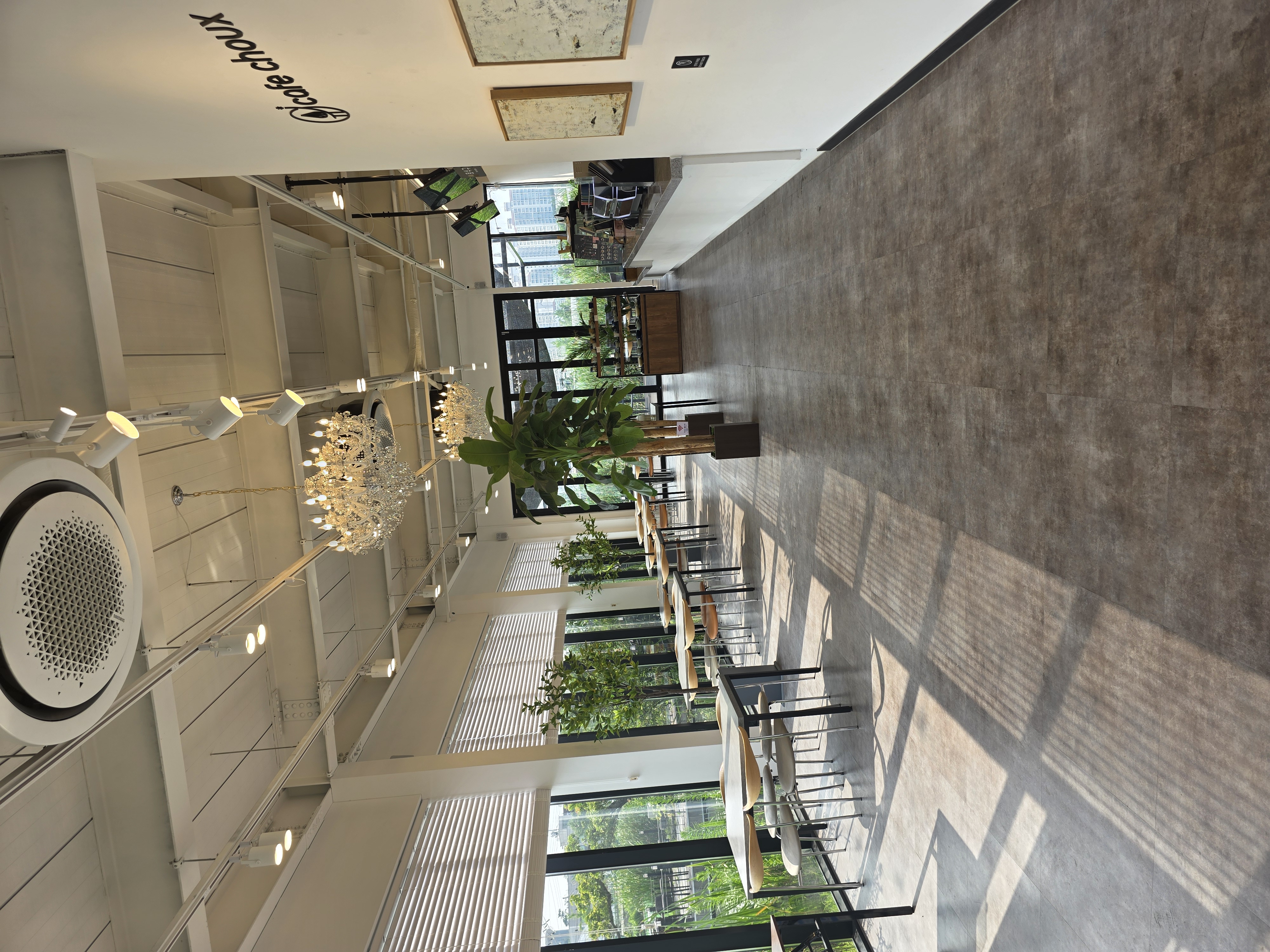 카페 내부는 넓고 쾌적해요. 큰 창문을 통해 들어오는 자연광이 아늑한 분위기를 만들어주고, 인테리어는 모던하면서도 따뜻한 느낌이 들어요. 특히, 야외 테라스는 여름에 방문하면 정말 좋을 것 같아요.
